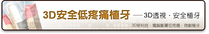 是以精確的3D電腦斷層掃描影像,取代原本的2D口腔X光攝影,並可掃描出骨質密度(骨頭軟硬程度),使患者於術前便可知道自己的骨頭狀況,讓醫師事前做好植牙計劃,選擇適當的人工牙根,決定最佳的植牙位置與角度,進而製造精確的手術模板,提高植牙的安全性與成功率。 本院更具備無菌手術室、VIP術後恢復室,讓您在最舒適且無壓力環境下享受植牙的過程。
