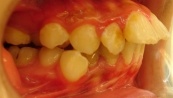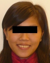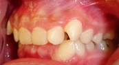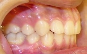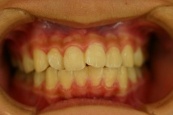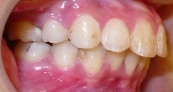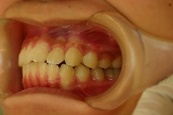 左上側門牙陷在裡面看似缺牙,利用快速低疼痛矯正器將側門牙拉出恢復動人微笑,不需拔牙
