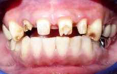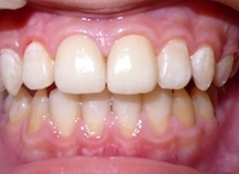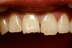 因蛀牙造成前牙區美觀缺陷,利用全瓷牙冠恢復美觀。
