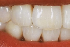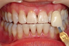 使用全瓷冠把原本顏色錯誤的假牙替換成跟自然牙一樣的美麗曲線