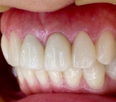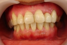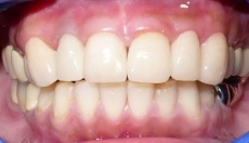 上顎全部缺牙,植入植體後當日裝戴固定臨時假牙可立即咬合。